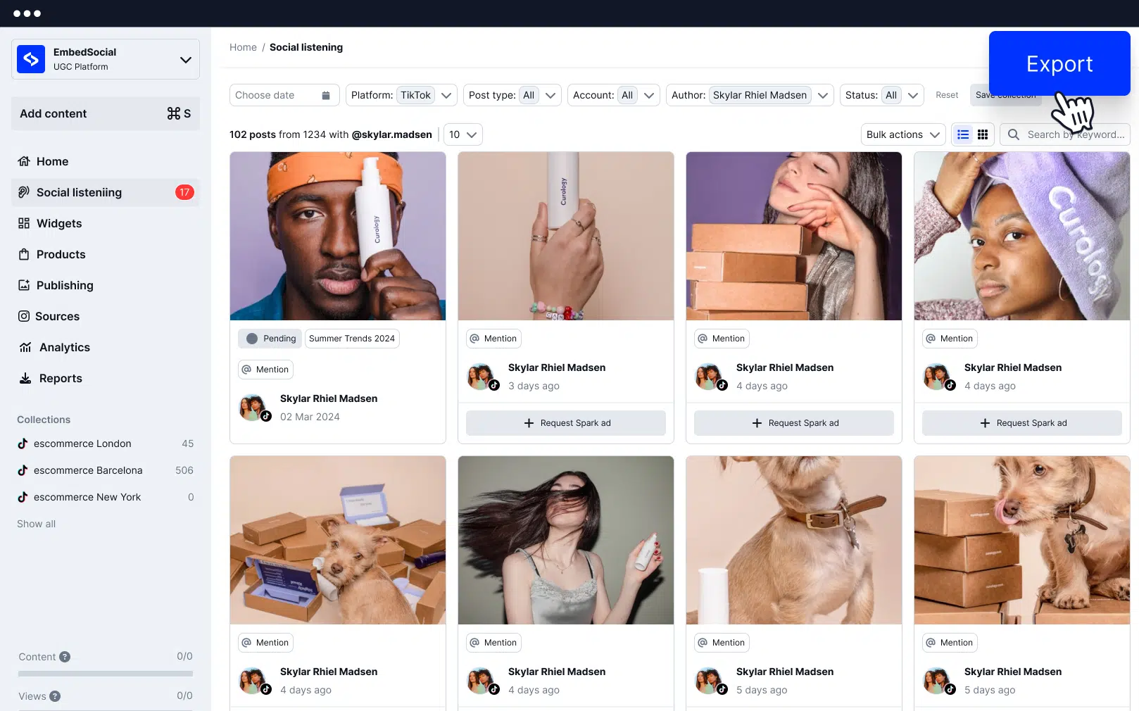 EmbedSocial offers a comprehensive suite of UGC tools for collecting, curating, and analyzing user-generated content across various social media channels.