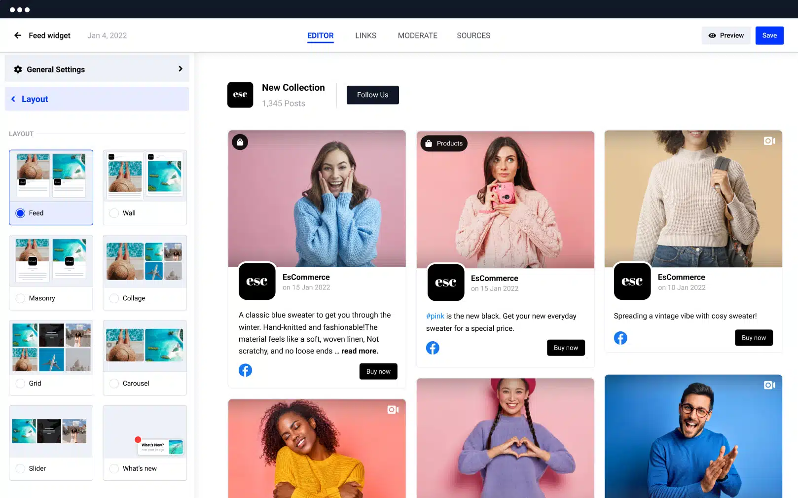 Authentic content drive conversions, especially if this is user-generated content, the usual shares of photos that your happy customers posted on Facebook about your products. EmbedSocial can help you re-use this content and build an entire Facebook shop on your website, with an option to add shoppable links such as Buy buttons that will navigate web visitors directly to the checkout pages of your products. And again, you don’t need coding skills; you will only need to tag your products in the feed and paste the provided code on your web page.